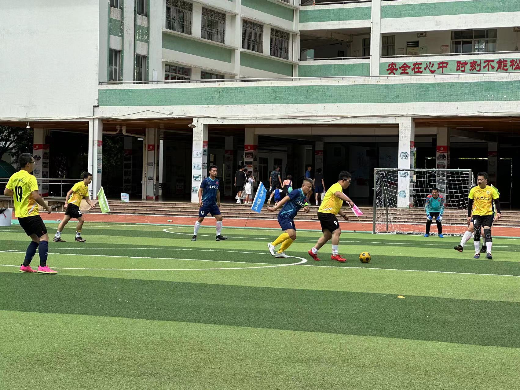 夏日炎炎,激情似火,动感音乐、光影绚烂。欢创集团主动迎战,积极参加2023年大龙街首届男子五人足球赛,展现了不一样的风采。欢创7位型男——由伍瑞琦领队、杨明、周浩然、郑洁鑫、许斯华、廖海康、陈乃俊,组成“欢乐队”代表集团参赛,秉承“友谊第一,比赛第二”的精神,在绿茵场上追逐奔跑,以球会友。欢创集团党支部书记、集团总裁陈文舒亲自到场打气助威。