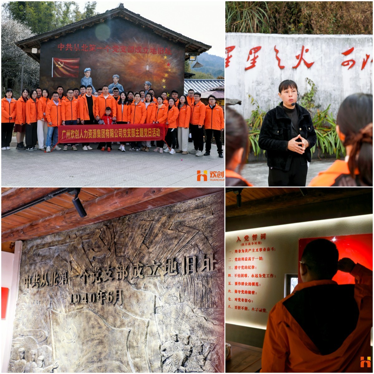 共创会结束后,欢创集团管理层前往广州市从化吕田镇三村进行户外拓展活动,在红色革命根据地学习革命文化,踏寻红色足迹,赓续红色精神。三村村的白石嘴胡氏公屋,曾是中共从化从北区第一个党支部的办公地点,见证了革命的火种在这里生根发芽、发展壮大。