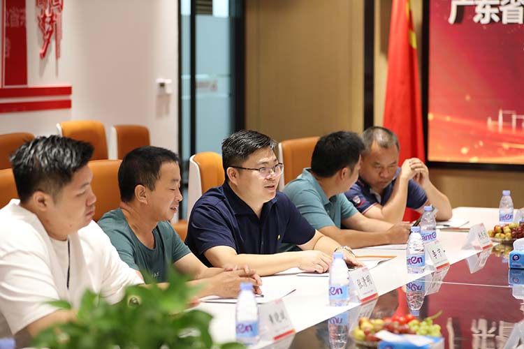 秘书长李宁介绍了来访的企业代表——江西泰涛建筑工程有限公司总经理杨志诚,广东祥富建筑工程有限公司董事长张清明、财务总监张雪梅,广州宁凡建筑工程有限公司总经理黄崇贤,互筑科技(广州)有限公司总经理黄晓斌。