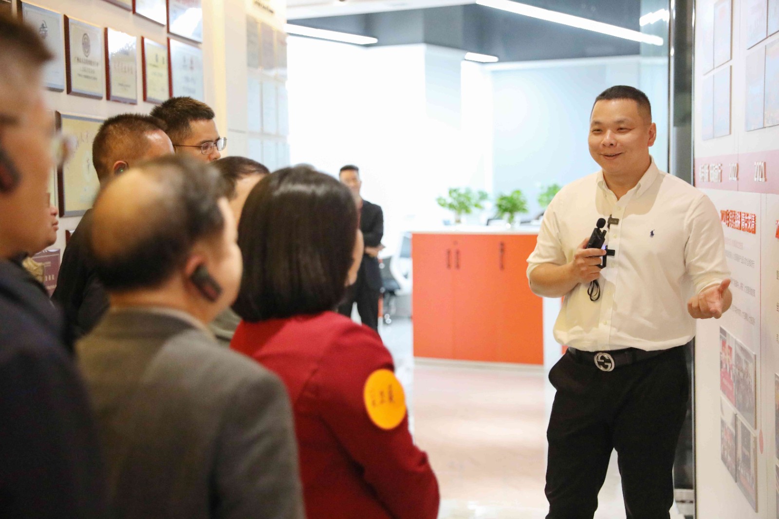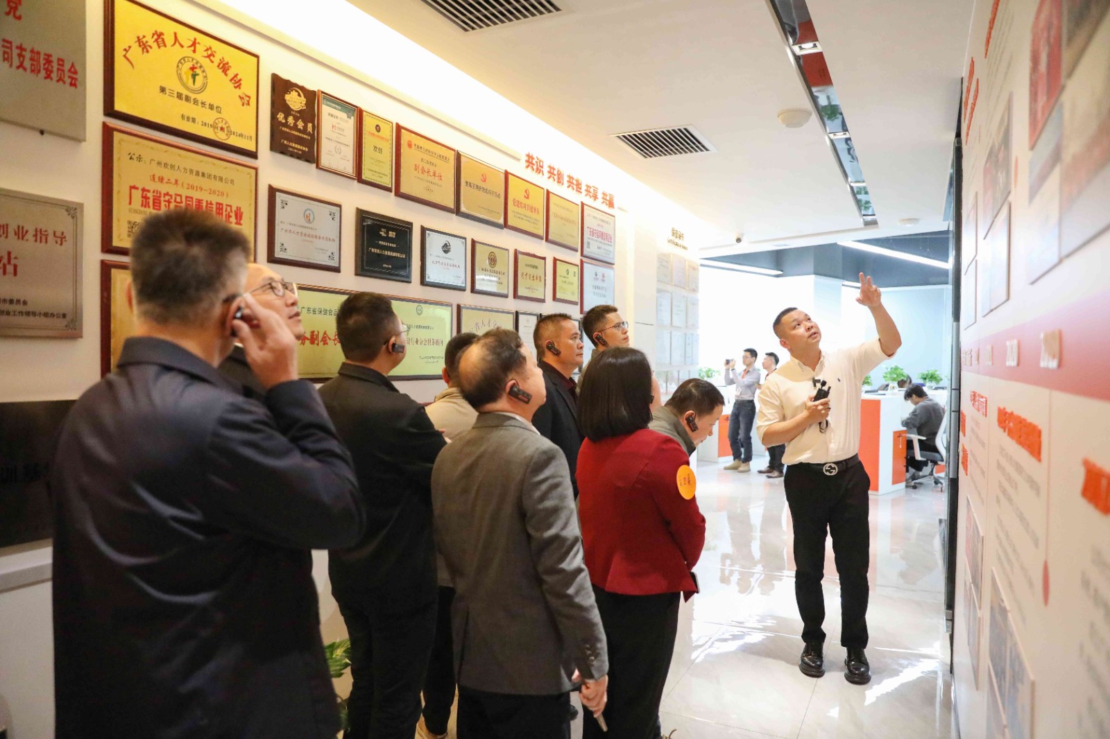 △罗宁弟董事长向来宾们介绍欢创文化墙